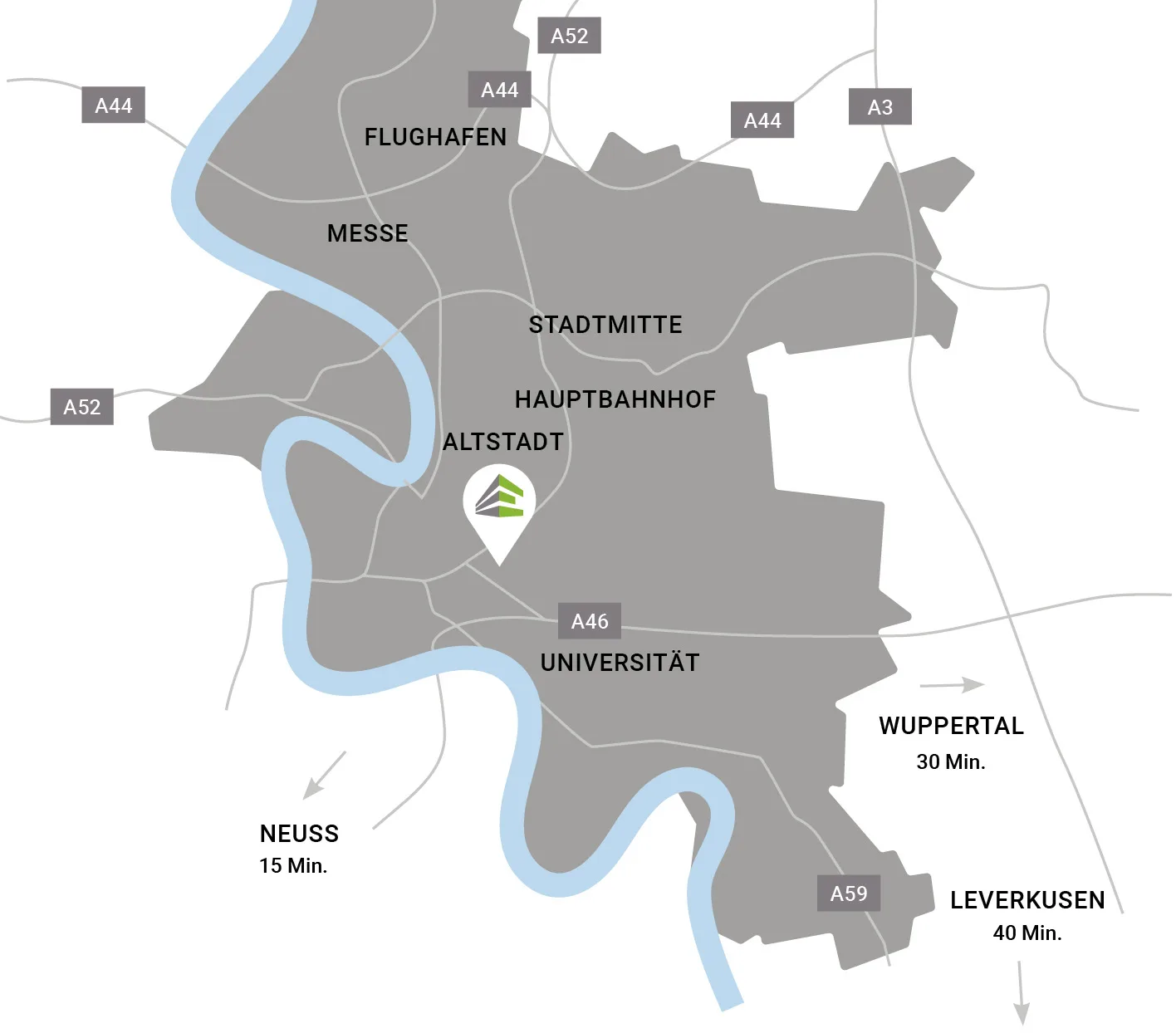 Mit ihrer dynamischen Wirtschaft, inspirierenden Kulturszene und zentralen Lage ist Düsseldorf mehr als nur eine Stadt – sie ist ein Dreh- und Angelpunkt für Innovation, Kreativität und Lebensqualität.